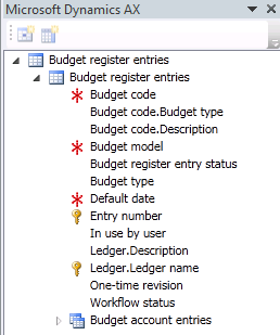 I also specified more fields for Budget entry header and line for informational purposes